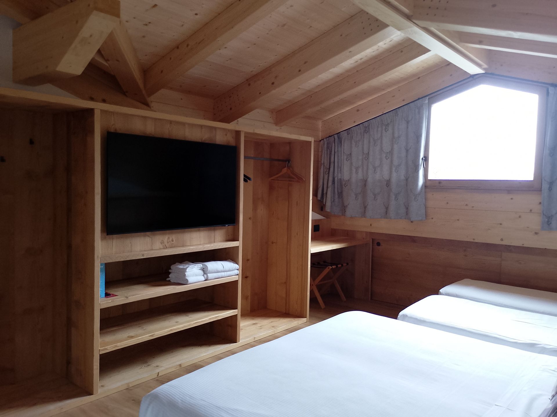 compresa colazione con torte fatte in casa , in una struttura tipica montana con rifiniture in legno e pavimenti in parquet.